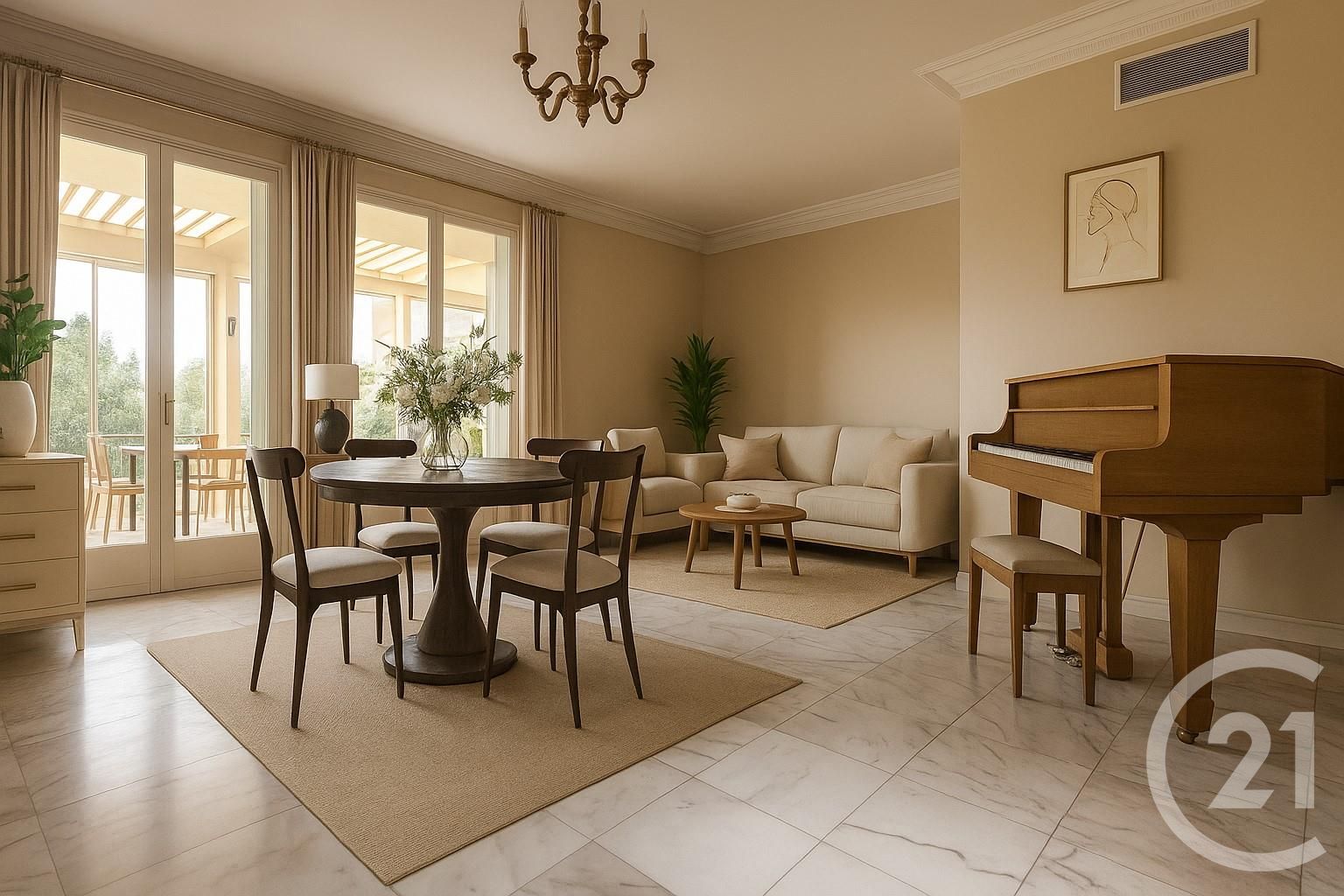 Dès l'entrée, vous découvrirez un vaste hall qui mène à la cuisine, ainsi qu'à un séjour spacieux prolongé par une véranda, idéale pour profiter d'un maximum de lumière tout au long de la journée.